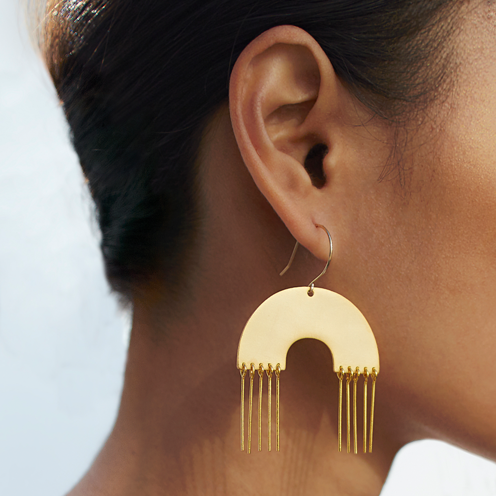 Make a bold statement with our Rainmaker Earrings. They are stunningly unique and are sure to be a talking point! Also available in plain brass or with a rose gold plate.